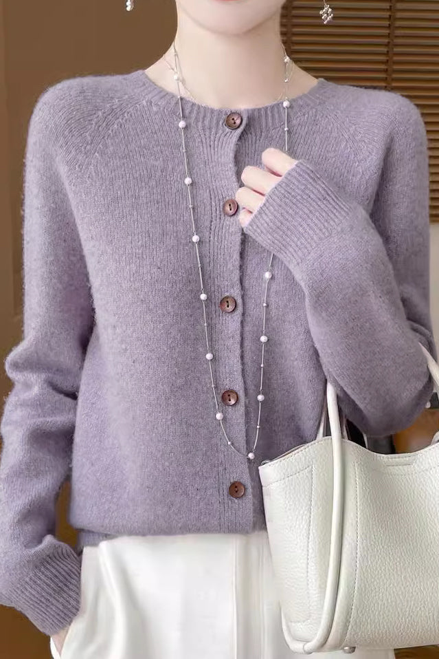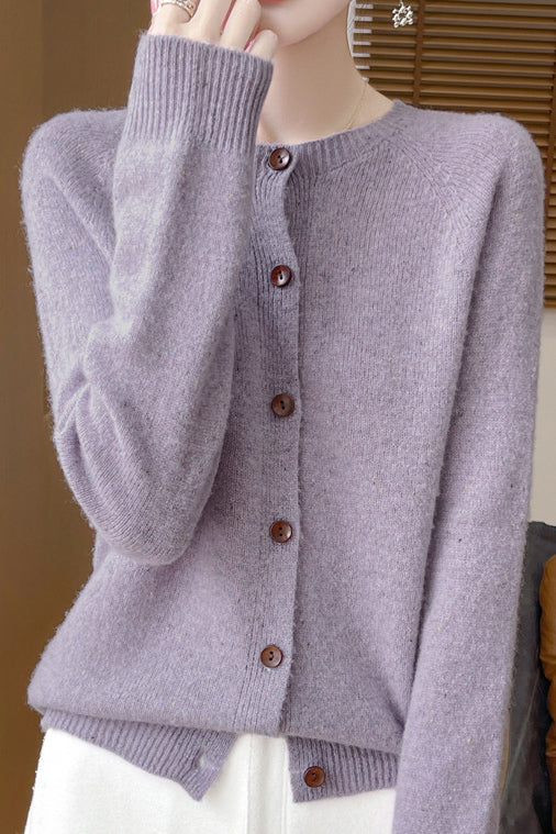 Casual Versatile Slub Yarn Speckled Knitted Long-Sleeve Cardigan