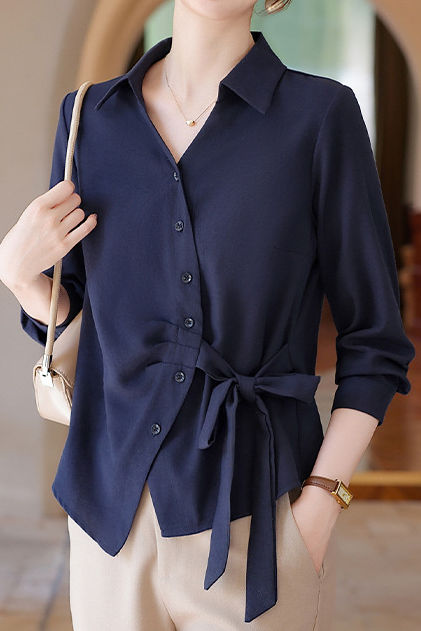 Casual Solid-Color Asymmetric Bow Tie Shirt