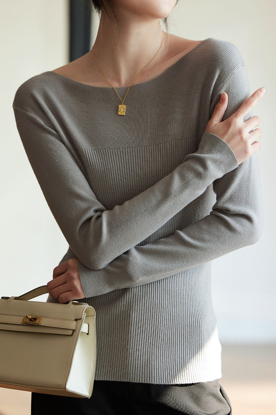Casual Comfortable Off-the-Shoulder Fine Ribbed Knitted Top