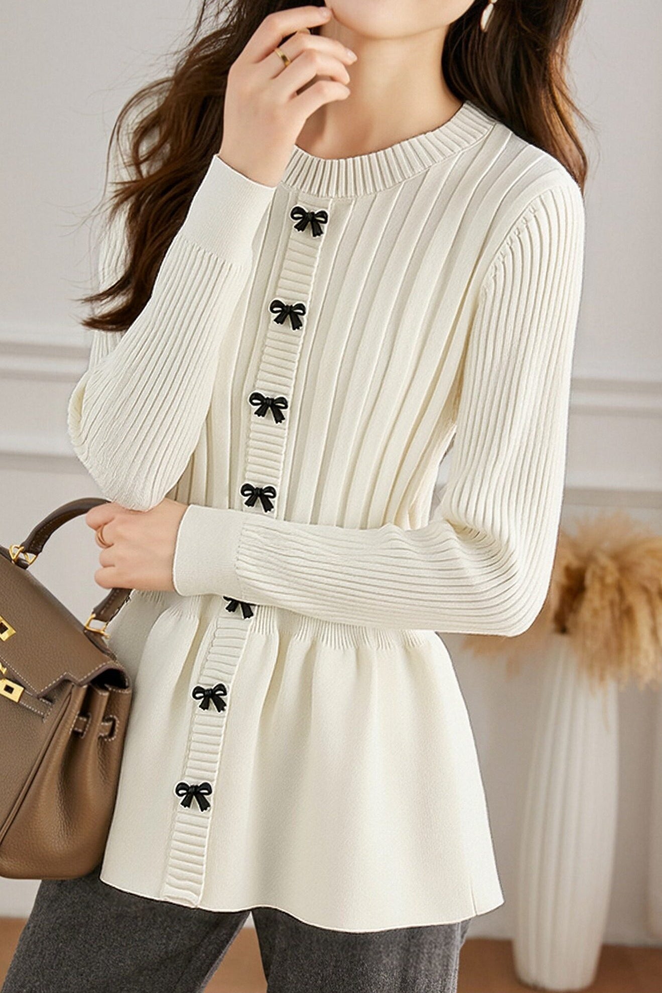 Casual Elegant Bowknot Decorative Button Pullover Knitted Top