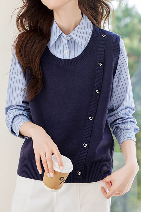 Casual Striped Fake Two-Piece Lapel Knitted Top