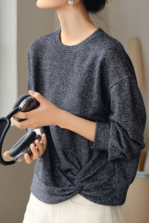 Casual Twist-Knot Design Marled Knit Sweatshirt