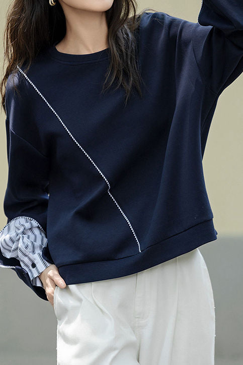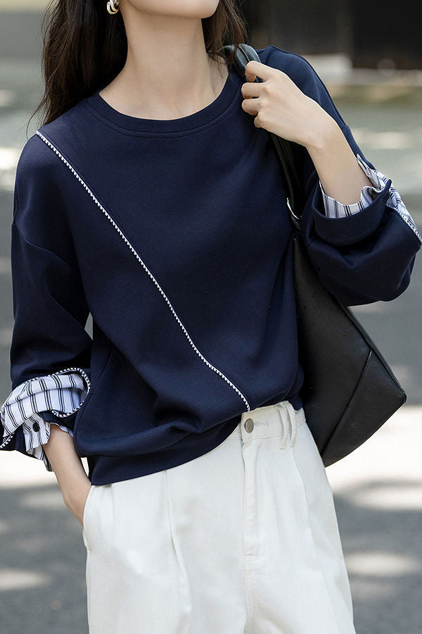 Round Neck Elegant Contrast Sweat
