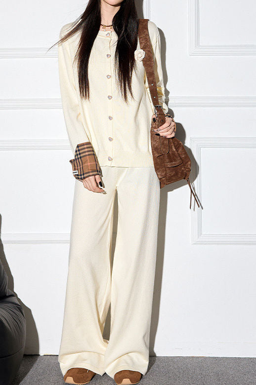 Casual Plaid Patchwork Knitted Cardigan Set