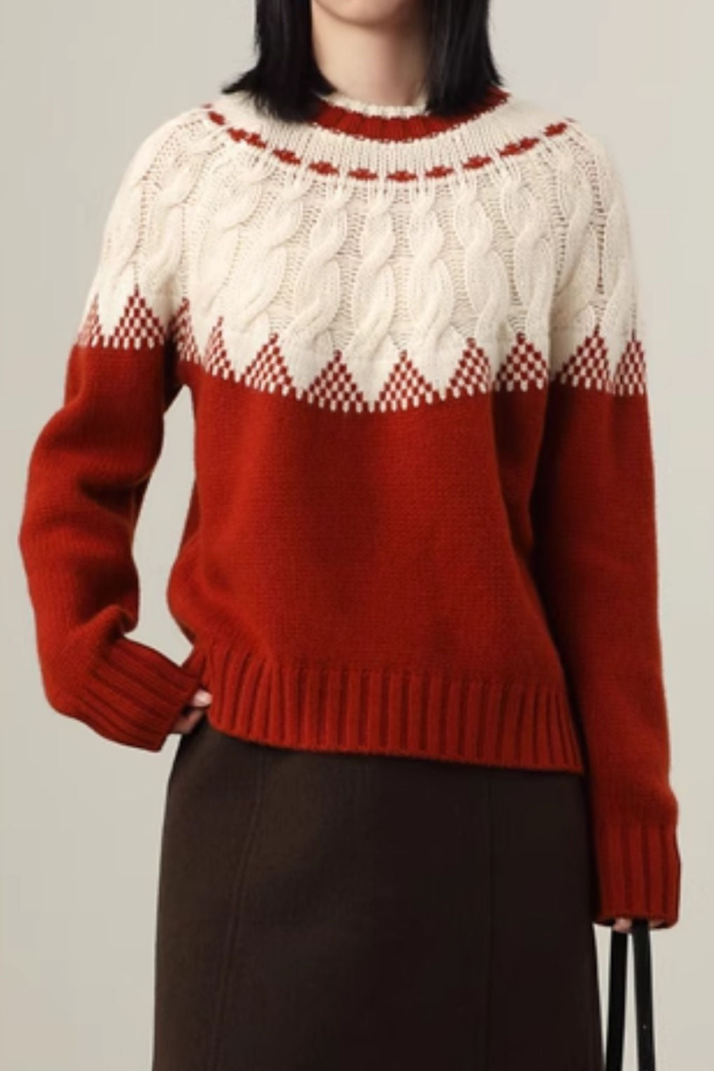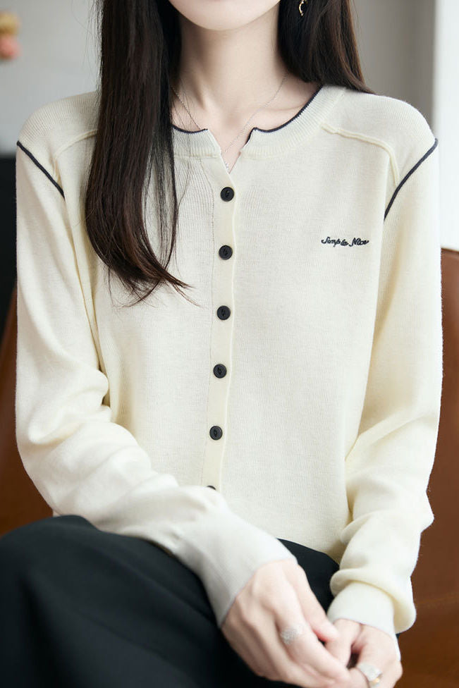 Casual Minimalist Color-Block Lapel Pullover Knitted Top - liwisi