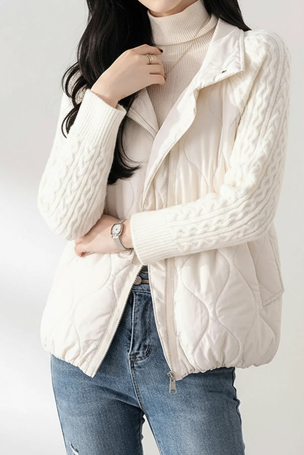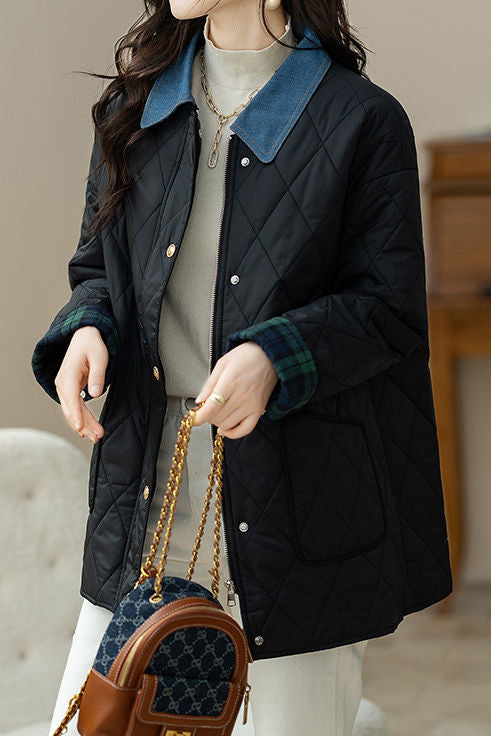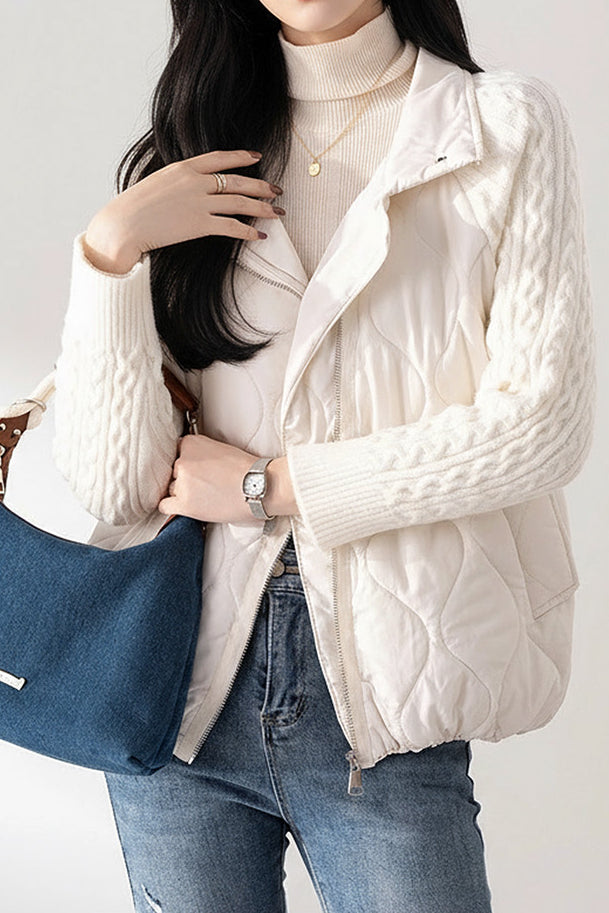 Casual Color-Block Plaid Lapel Cable-Knit Cardigan - liwisi