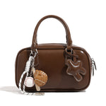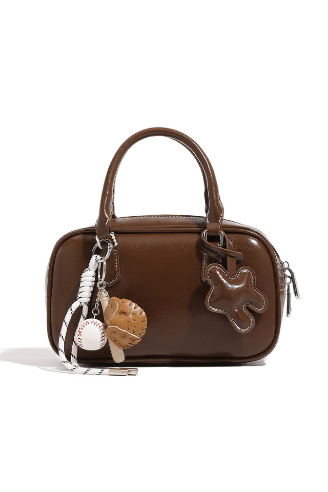 Bowling bag, solid color, double-ended zipper design, comes with shoulder strap, interior with zippered hidden pocket and phone pocket, includes baseball-themed pendant, compatible with DIY bow pendants or pom-pom knitted charms |