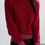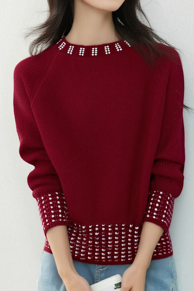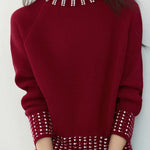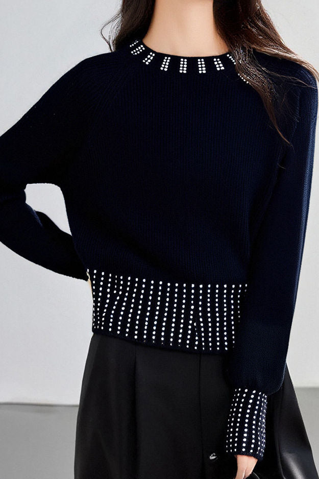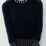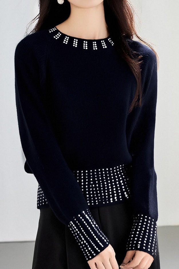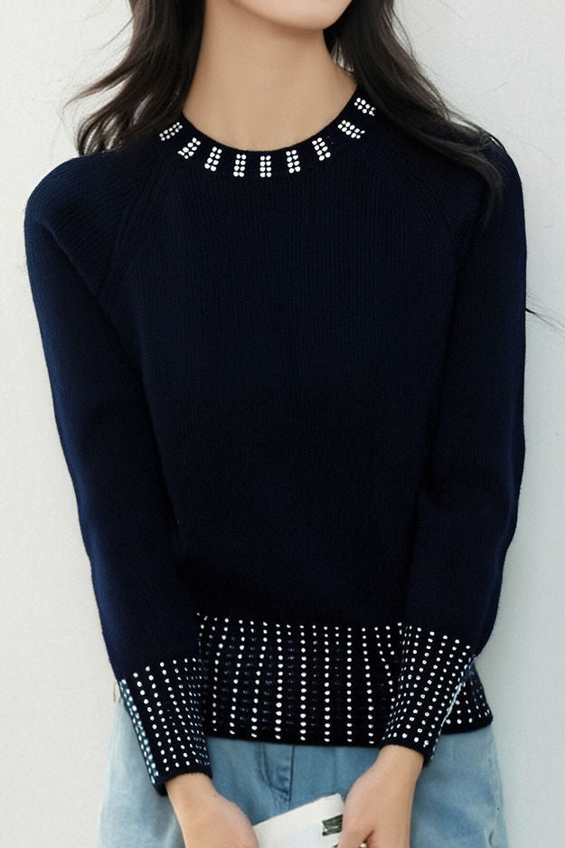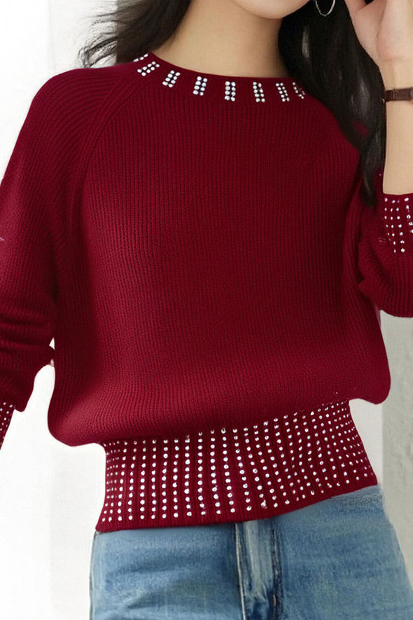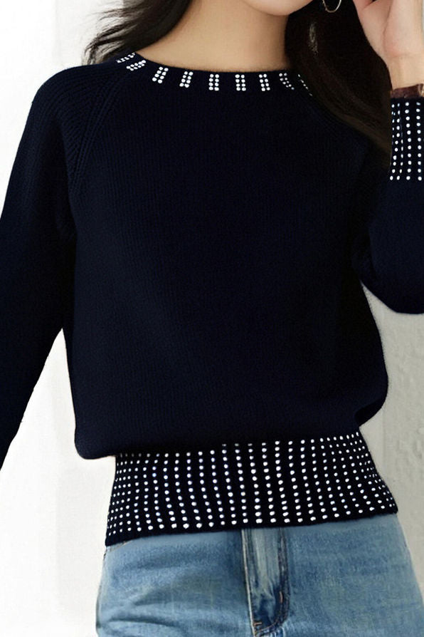 Casual Versatile Rhinestone-Embellished Knitted Top