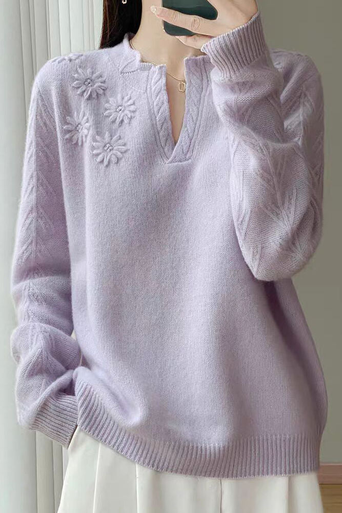 Casual Versatile Solid-Color Floral Jacquard Knitted Top