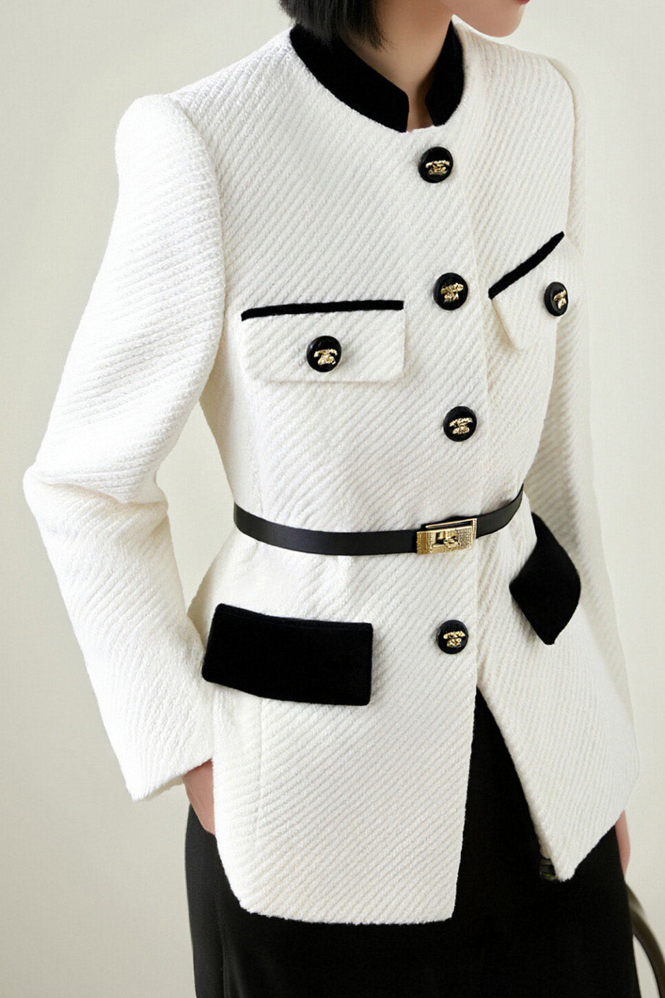 Elegant Nail Color Tweed Jacket with Lining
