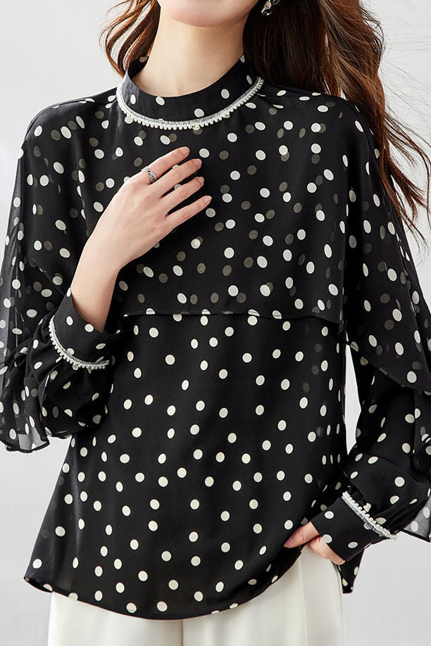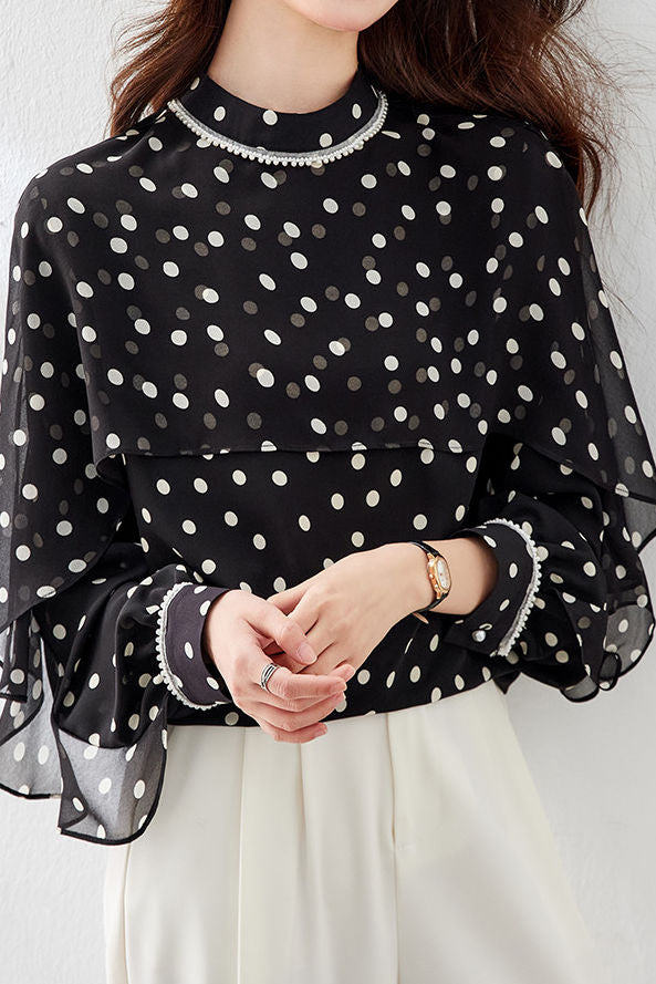 Elegant Polka-Dot Beaded Chiffon Blouse