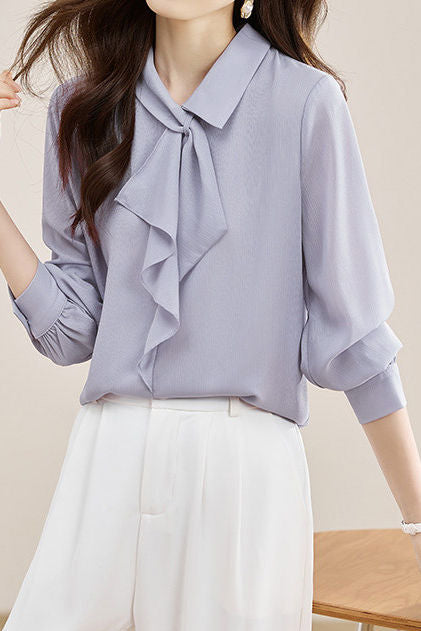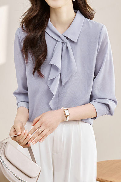 Elegant Lightweight Tie-Waist Jacquard Blouse