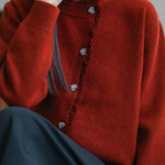 Casual Knit Cardigan with Lace Trimmed Round Neck