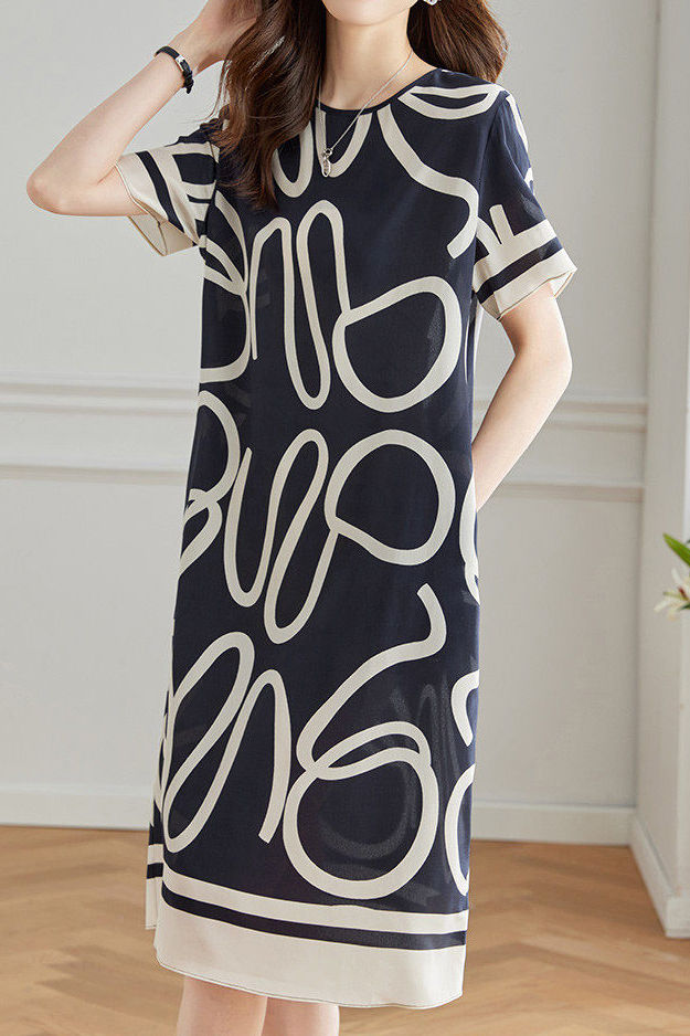 Silk Geometric Print Mulberry Silk Dress - liwisi