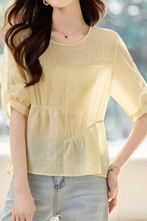 Casual Tencel Waist Cinched Pleated T-Shirt