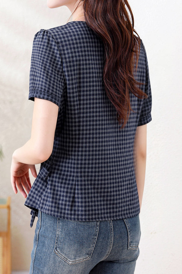 Shirt: Plaid base fabric for a vintage casual feel, with a drawstring waist to optimize proportions. Clean, crisp overall look with a relaxed vintage softness for everyday casual wear. |
