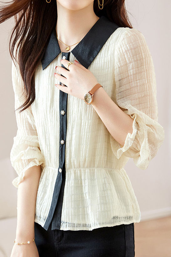 Solid color, skipper collar, three-quarter sleeves, knee length, with drawstring at waist (adjustable), front button opening, glossy finish, voluminous, nice texture, ribbon tie, with pockets |