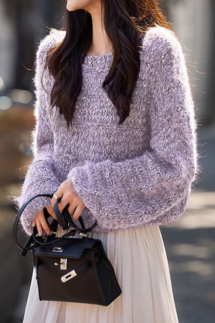 Casual Versatile Sequin Crew Neck Pullover Sweater