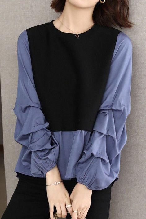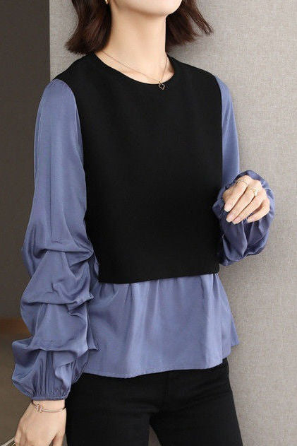 Casual Versatile Paneled Fake Two-Piece Shirt