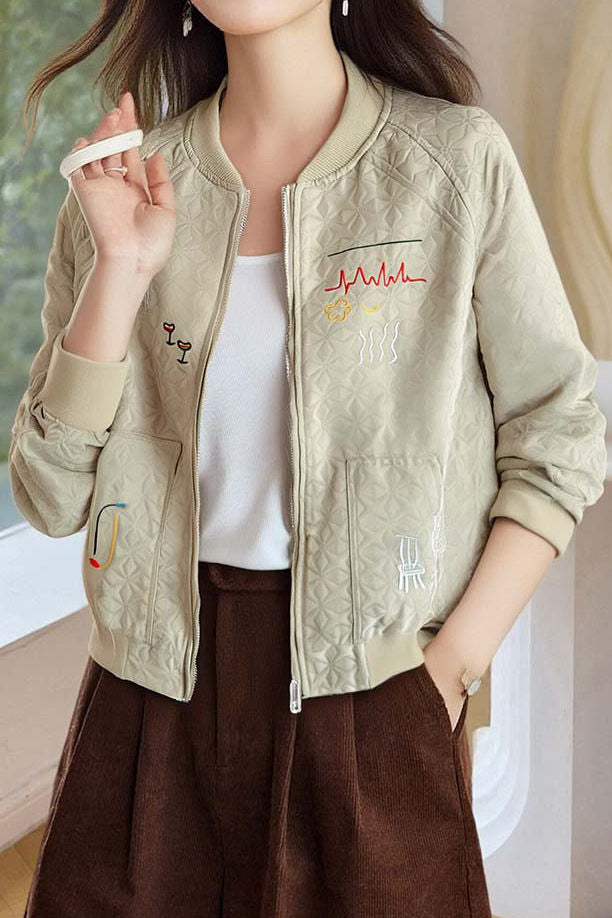 Casual Youthful Embroidered Argyle Quilted Jacket