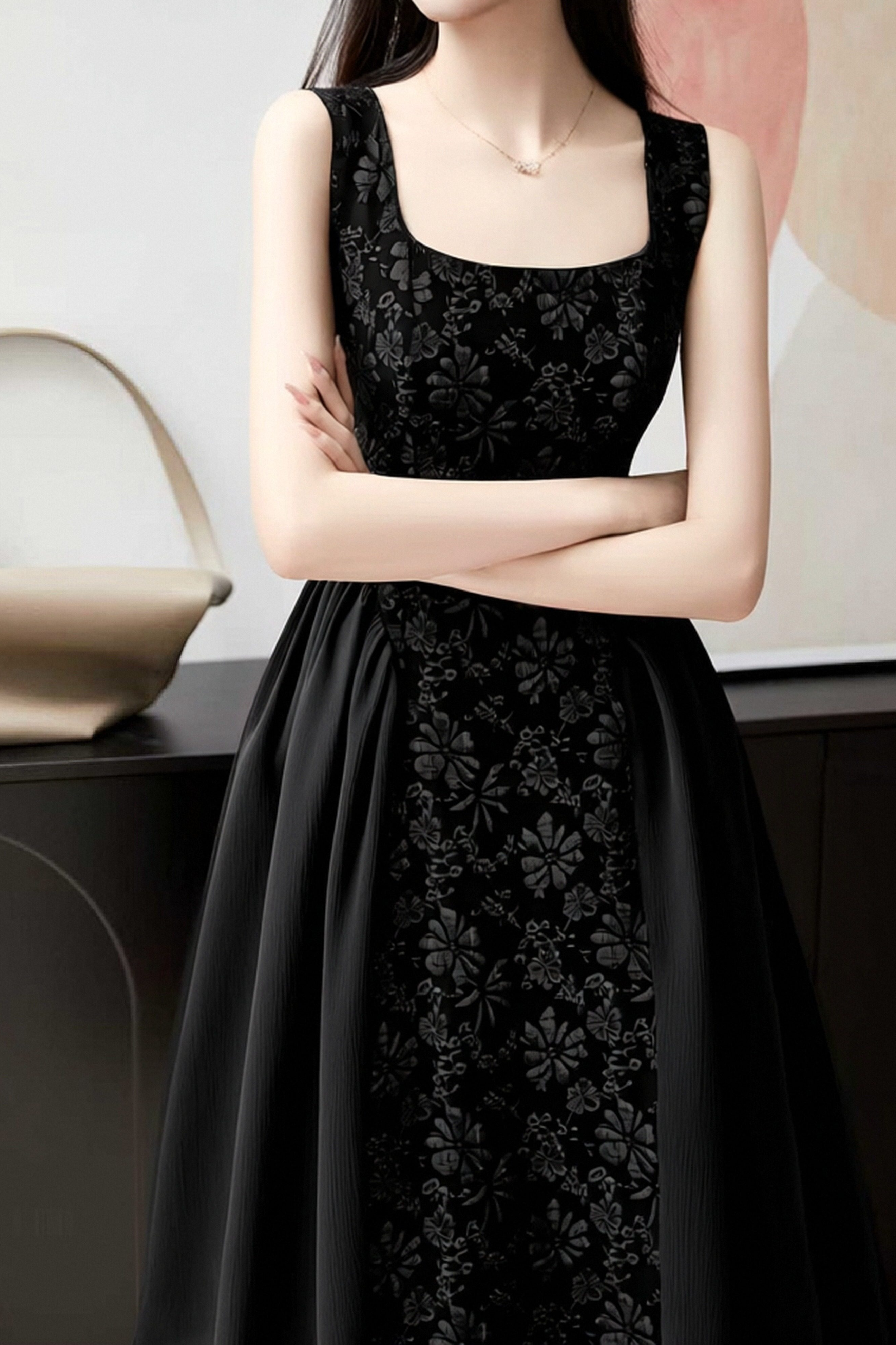 Elegant Romantic Lantern-Sleeve Fitted-Waist A-Line Floral Dress