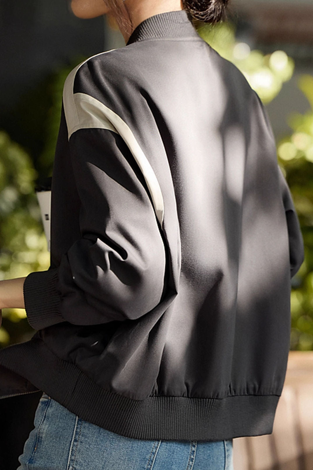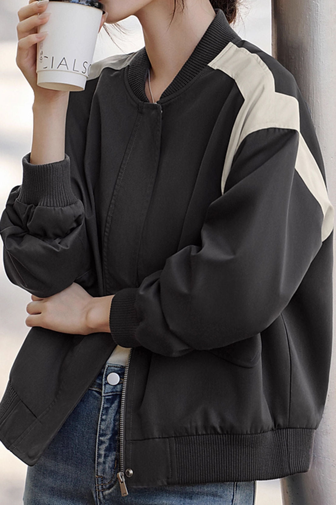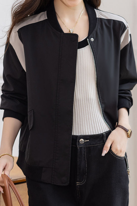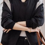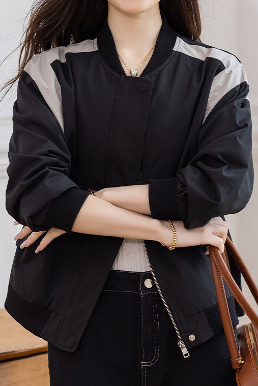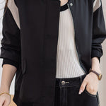 Casual Minimalist Daily Color-Block Baseball Jacket
