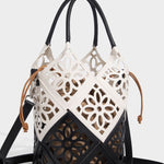 Hollow-Out Drawstring Convertible Shoulder Crossbody Handbag