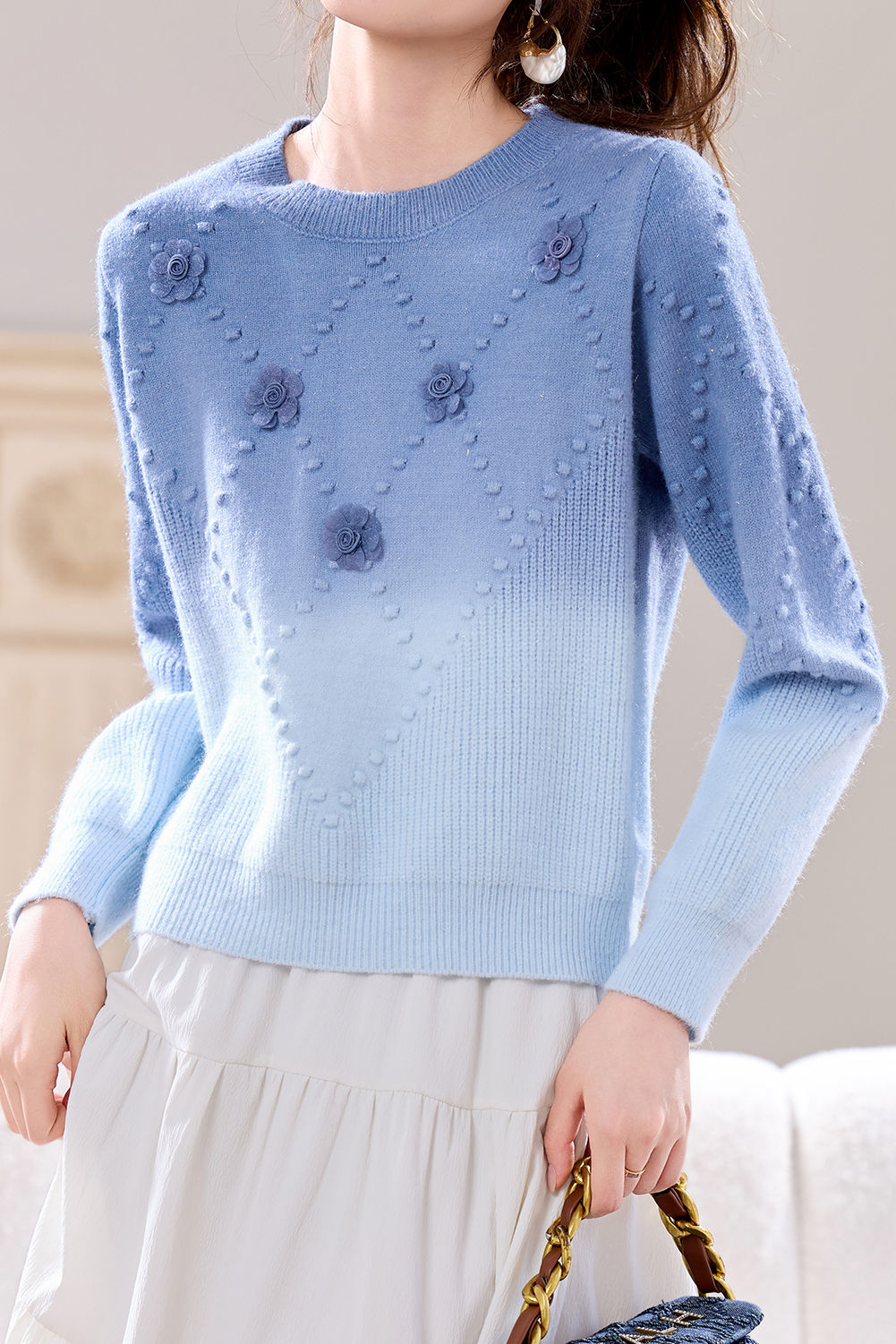 Casual Versatile Gradient Pullover Crew Neck Long-Sleeve Sweater