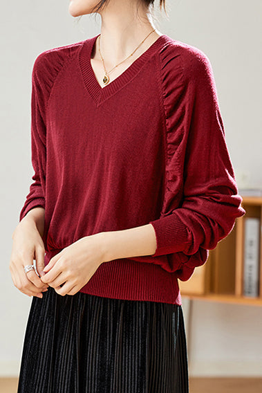 Casual Loose Batwing Sleeve Pleated Waist Knit Top