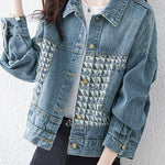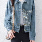 Coat with polo collar, long sleeves, front single-button closure, buttoned cuffs, left chest pocket design, and plaid patchwork design |
