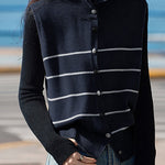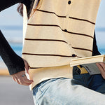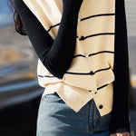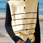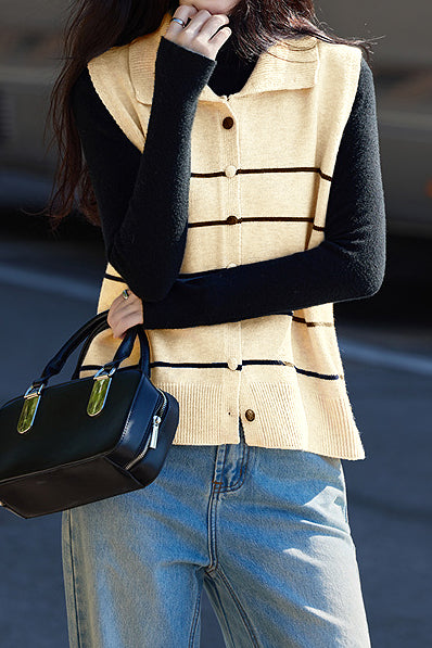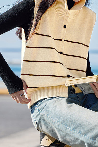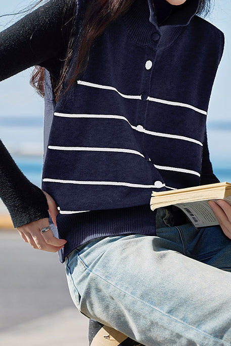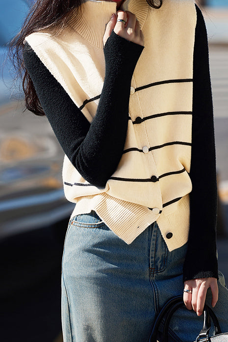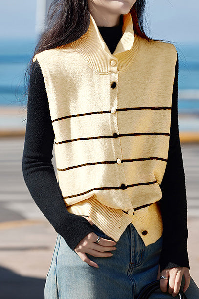 Vest with high collar, sleeveless, striped color-block design, single-button closure |