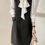 Shiny Beaded V-Neck Wool Blend Vest Dress