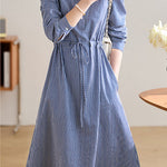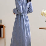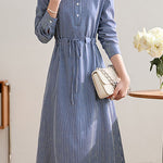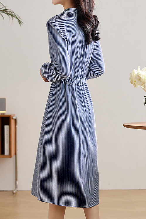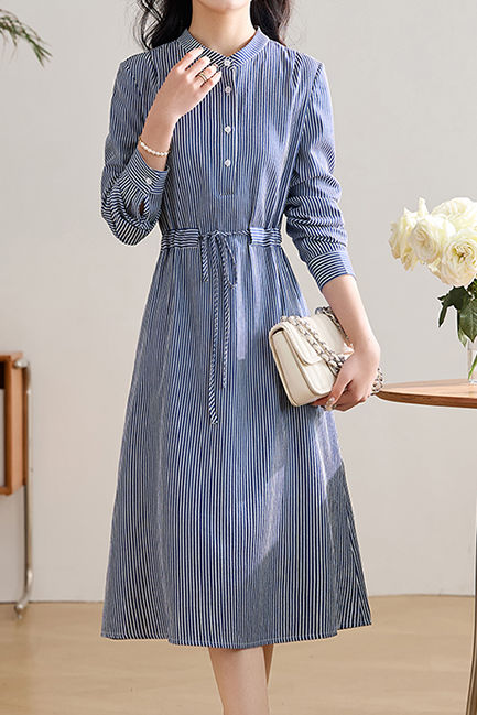 Office Versatile Striped Waist-Cinched Dress