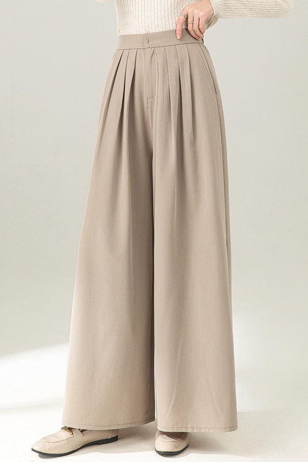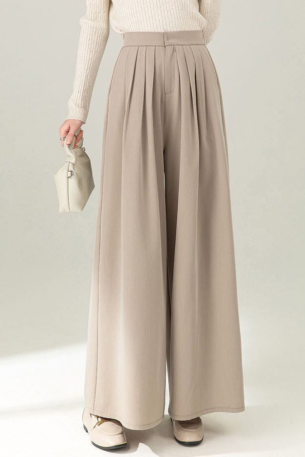 Casual Commuter High-Waisted Pleated Wide-Leg Trousers