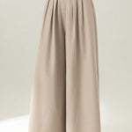 Wide-Leg Trousers with a front zipper and hook closure, elastic waistband at the back, pleats at the front, side pockets, solid color, and loose wide-leg fit |