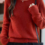 Pullover boat neck sweater,solid color,long sleeves loose fit,knitted ribbed waist cinch,front button split design buttons unbuttonable |
