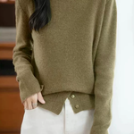 Casual Warm Boat Neck Buttoned Split Sweater