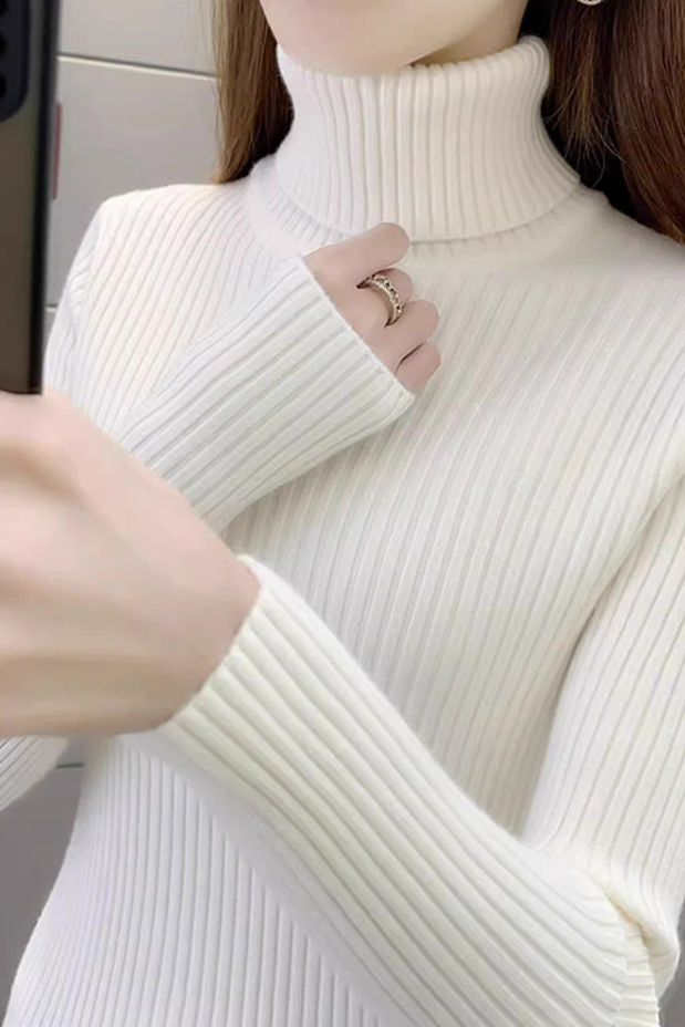 High-neck base layer, solid color, high neck long sleeves slim fit, ribbed texture |