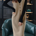 Casual Versatile V-Neck Sleeveless Pullover Knitted Dress