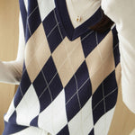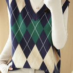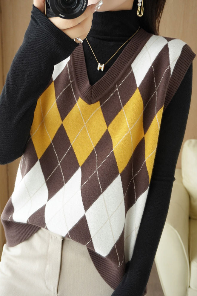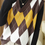 Casual Retro Argyle V-Neck Color-Block Knitted Vest