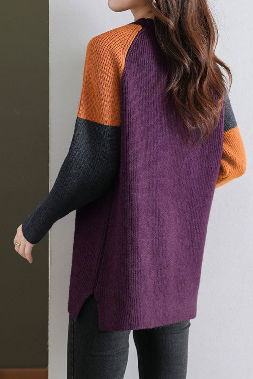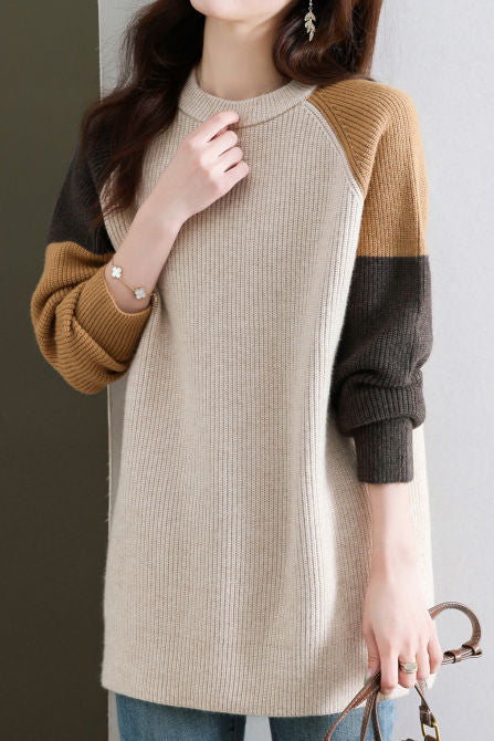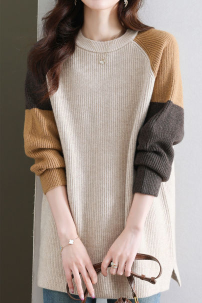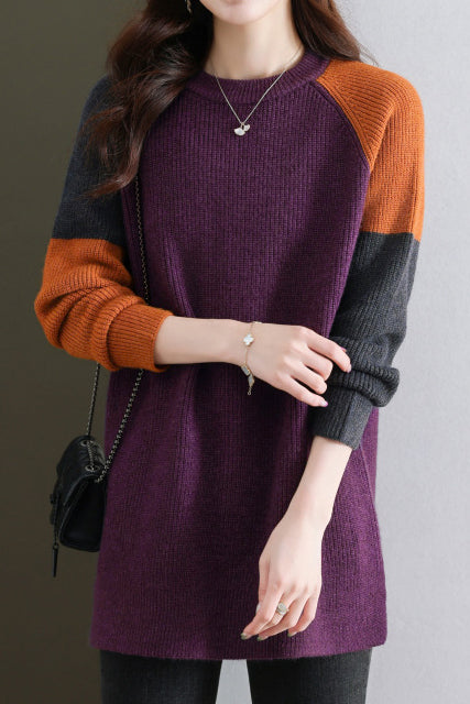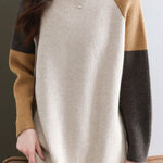 Casual Versatile Crew Neck Color-Block Long-Sleeve Sweater