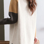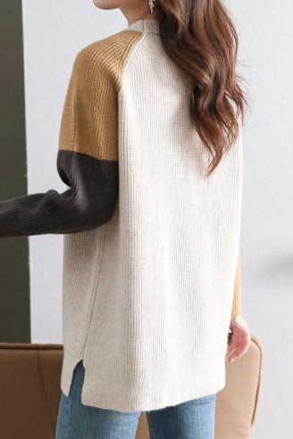 Pullover sweater,color-block paneling,two-color drop-shoulder sleeve design,crew neck long sleeves,loose fit |