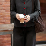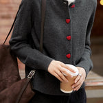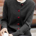 Knitted cardigan,crew neck loose fit,front center with placket color-block heart-shaped button design |