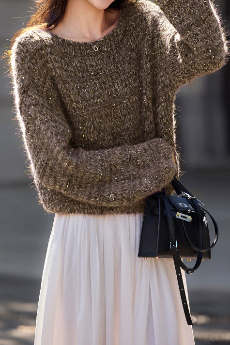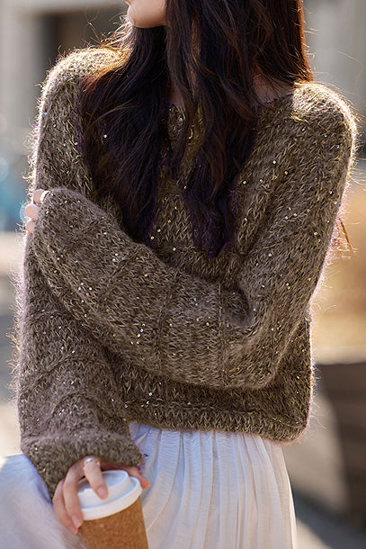 Casual Versatile Sequin Crew Neck Pullover Sweater