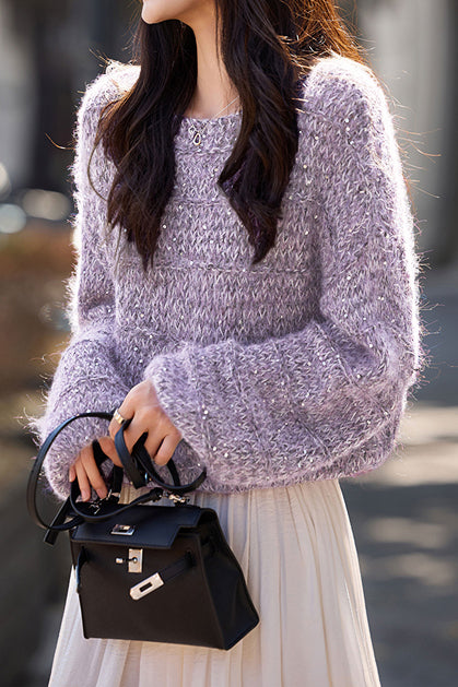 Pullover sweater,pullover loose fit,body with blended texture paired with sequin design |