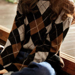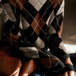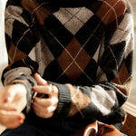 Casual Crew Neck Color-Block Argyle Pullover Knitted Top