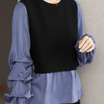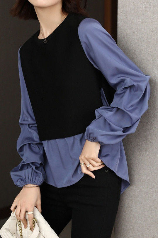 Casual Versatile Paneled Fake Two-Piece Shirt