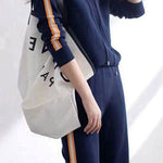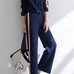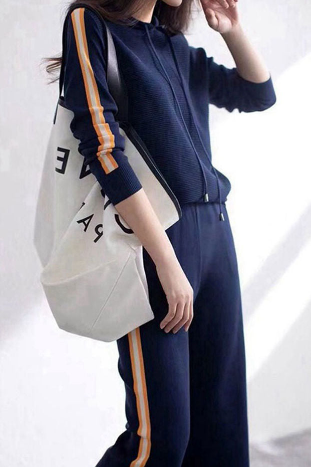 Knitted set,pullover hooded long-sleeve with long pants set,two sides decorated with color-block webbing |