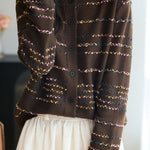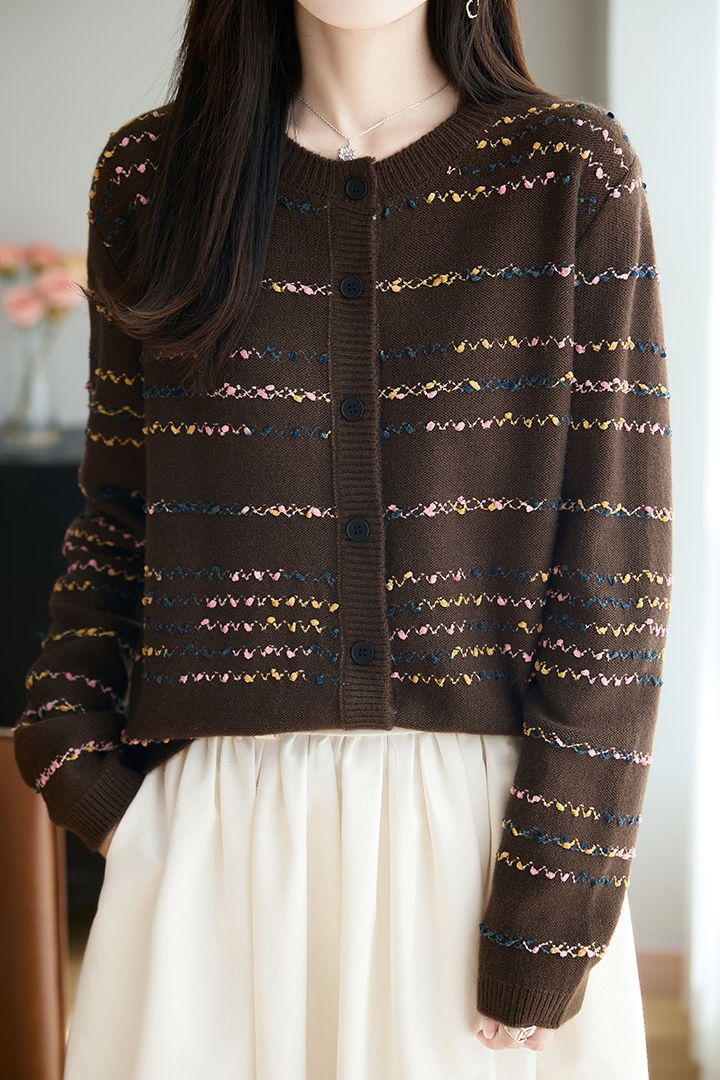 Cardigan,crew neck long-sleeve loose fit,full-body with horizontal speckled striped jacquard design,front center with openable buttons |