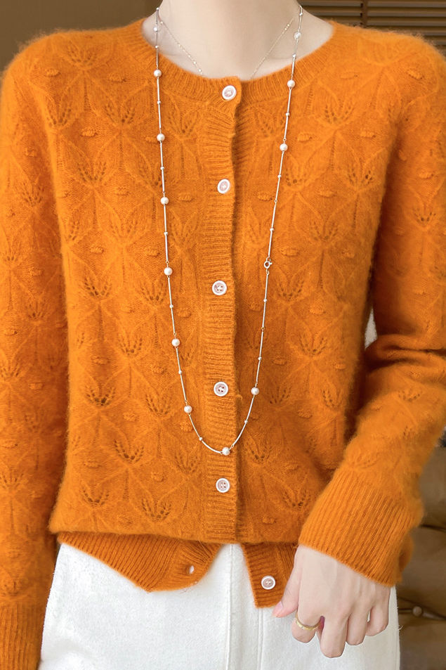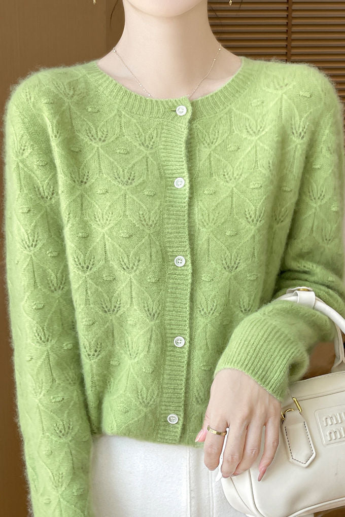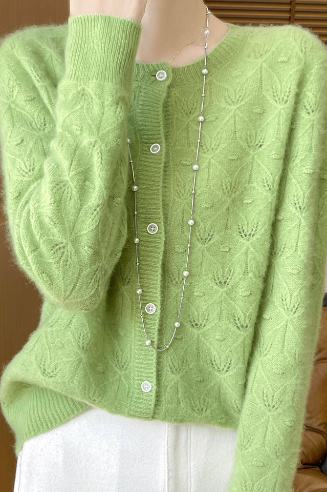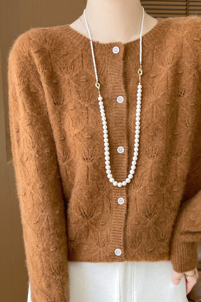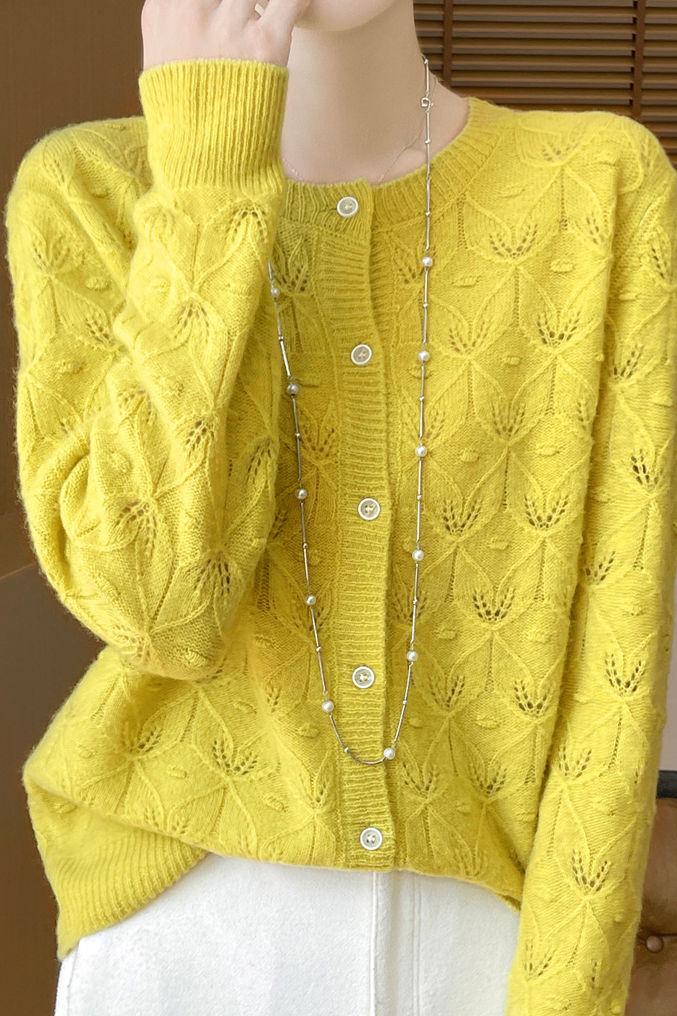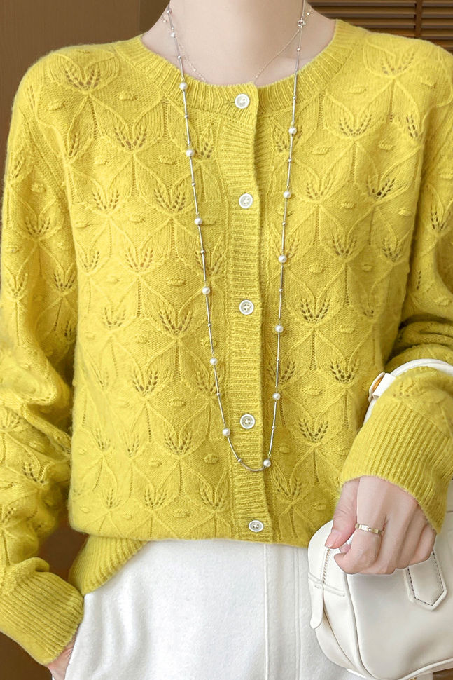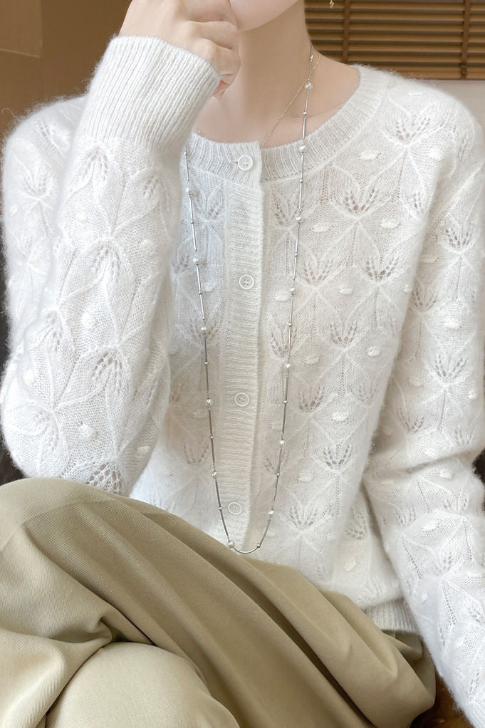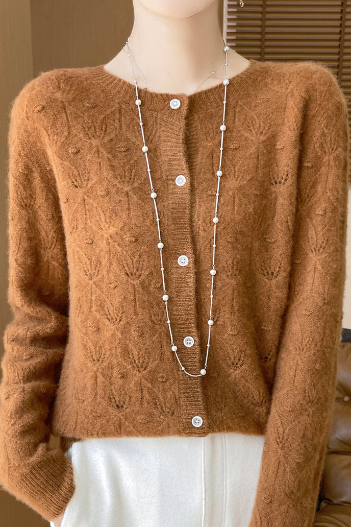 Casual Versatile Circle-Patterned Hollow-Out Jacquard Cardigan
